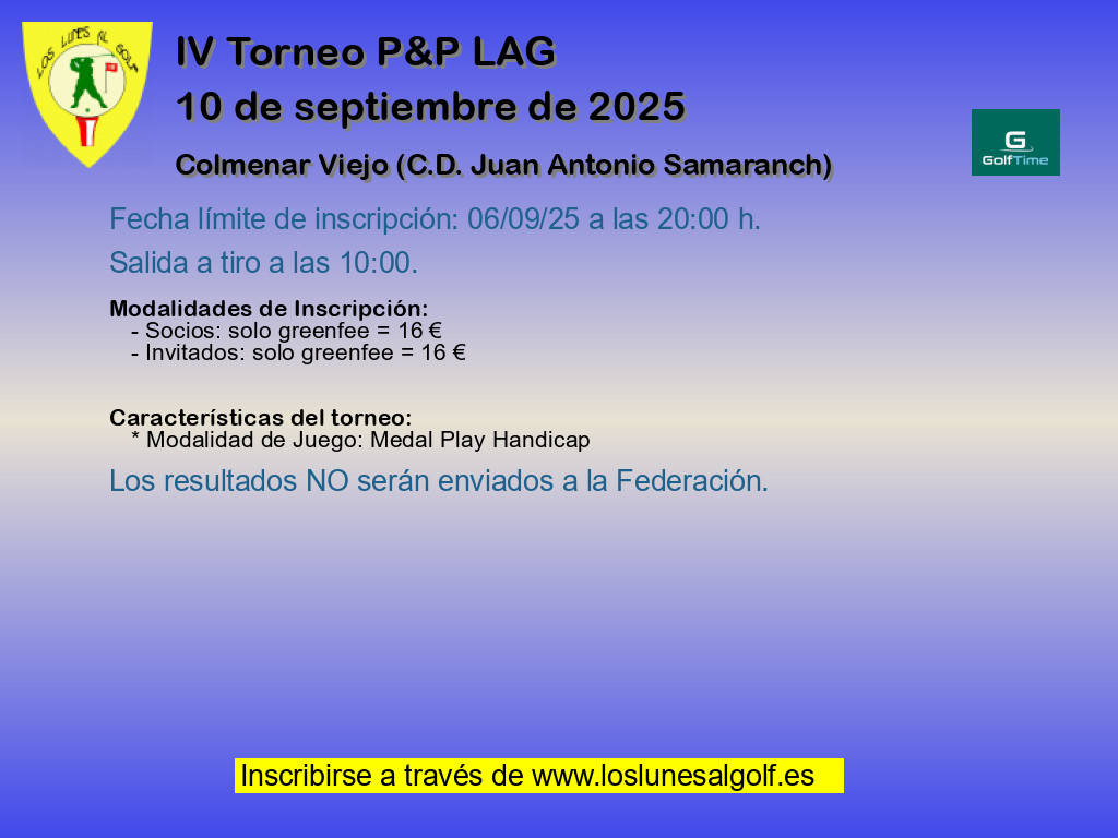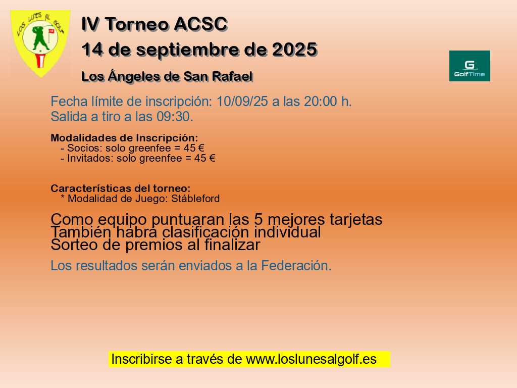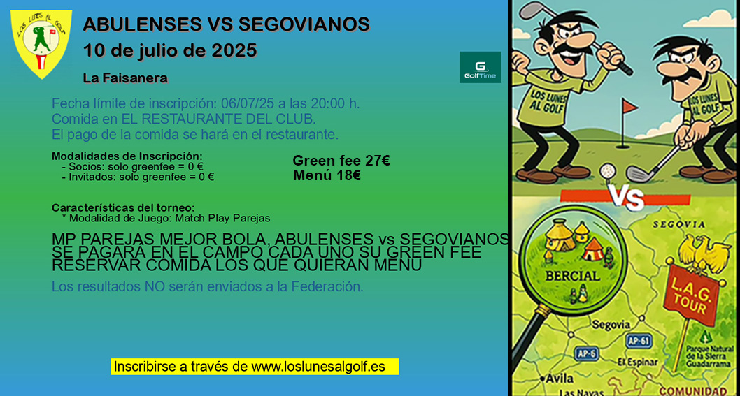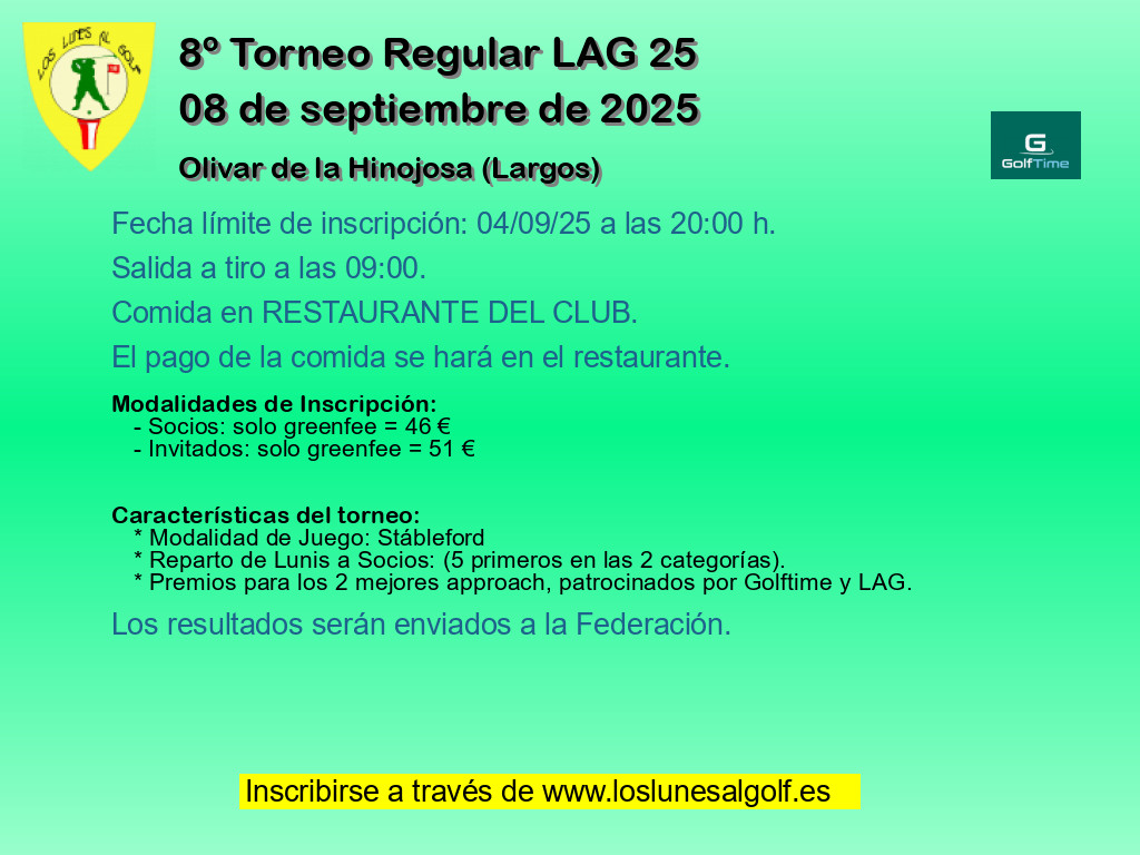 - Modalidad Socios: solo greenfee = 0 € (25 € a pagar en el campo)
