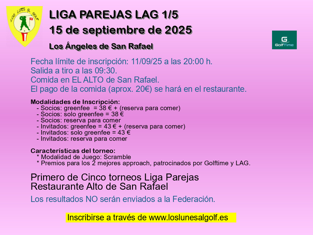 - Modalidad 1 Socios: greenfee = 28 € + (reserva para comer)