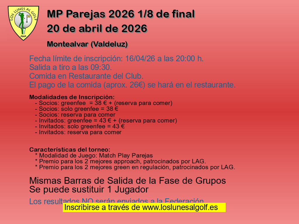 - Modalidad 1 Socios: greenfee = 38 € + (reserva para comer)