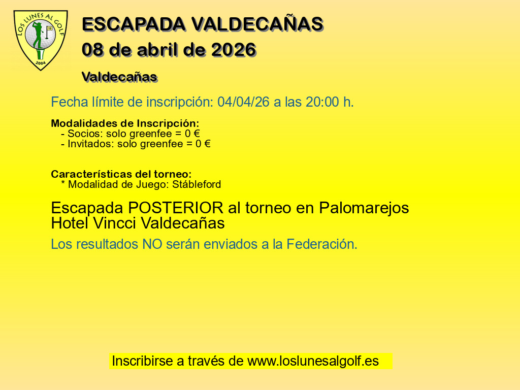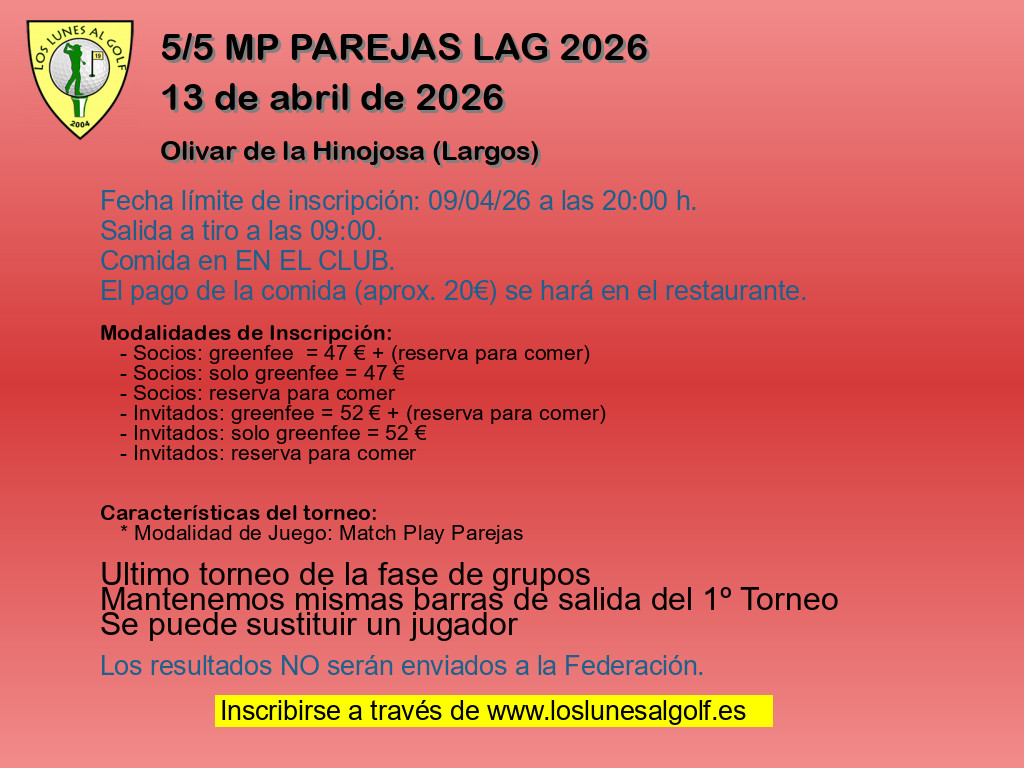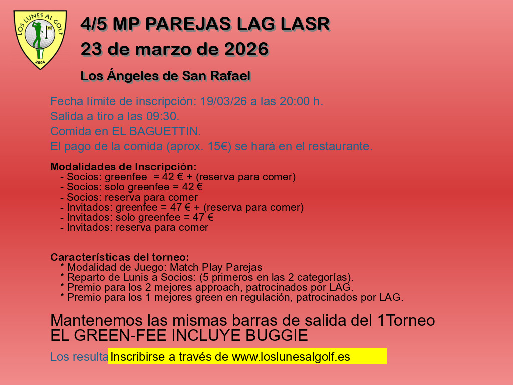 - Modalidad 1 Socios: greenfee = 38 € + (reserva para comer)