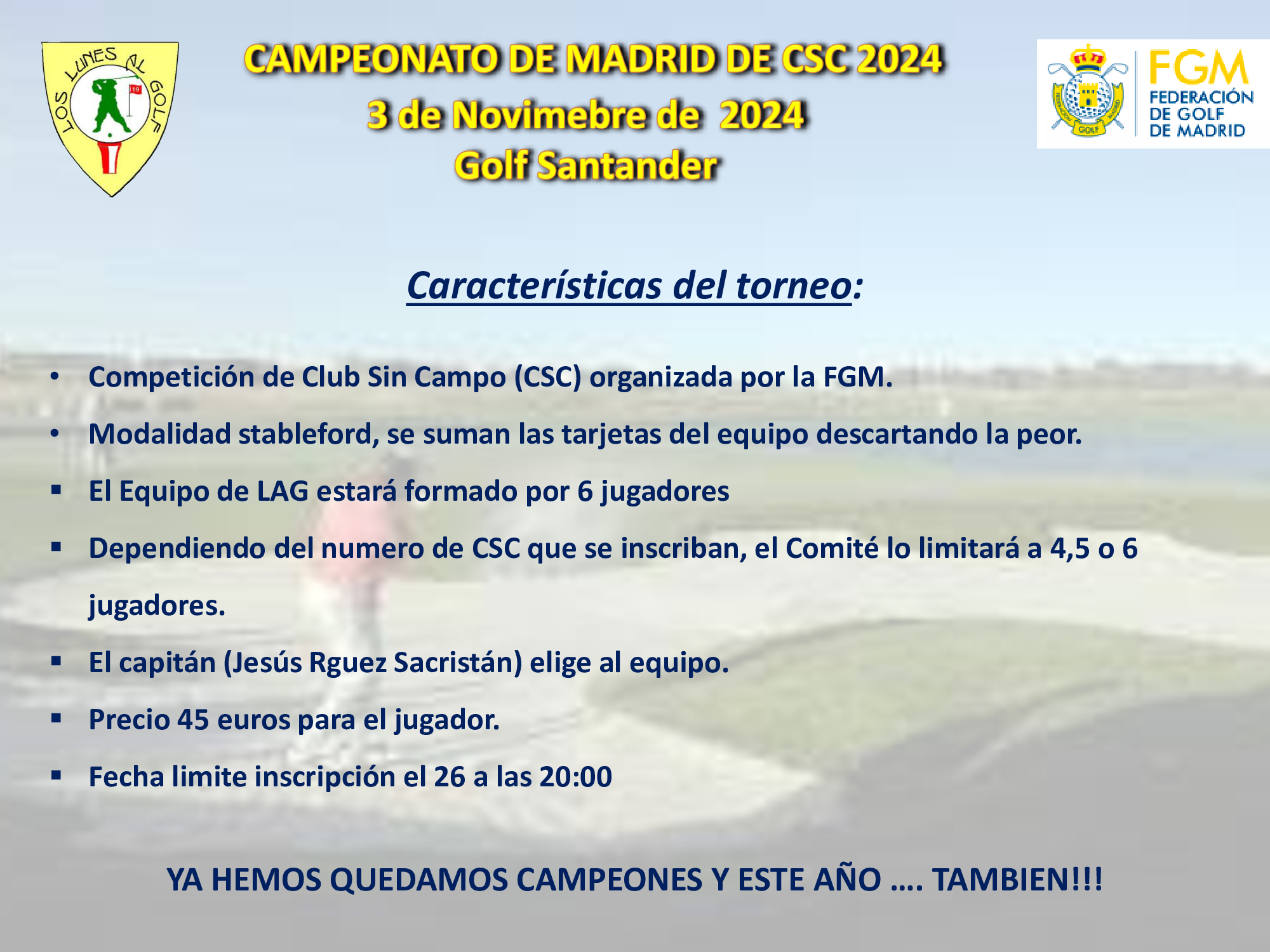 - Modalidad 5 Simpatizantes: solo greenfee = 40 €