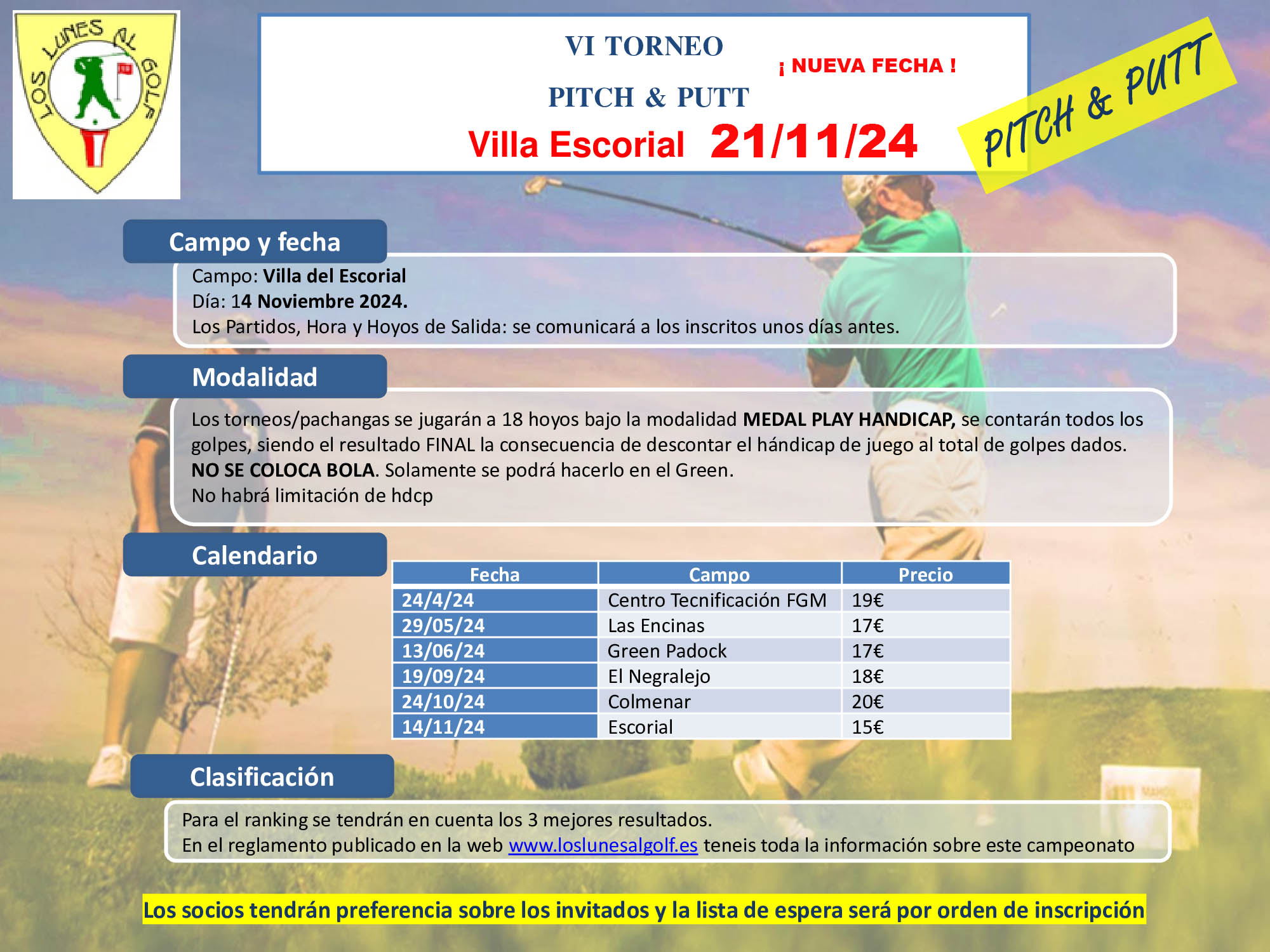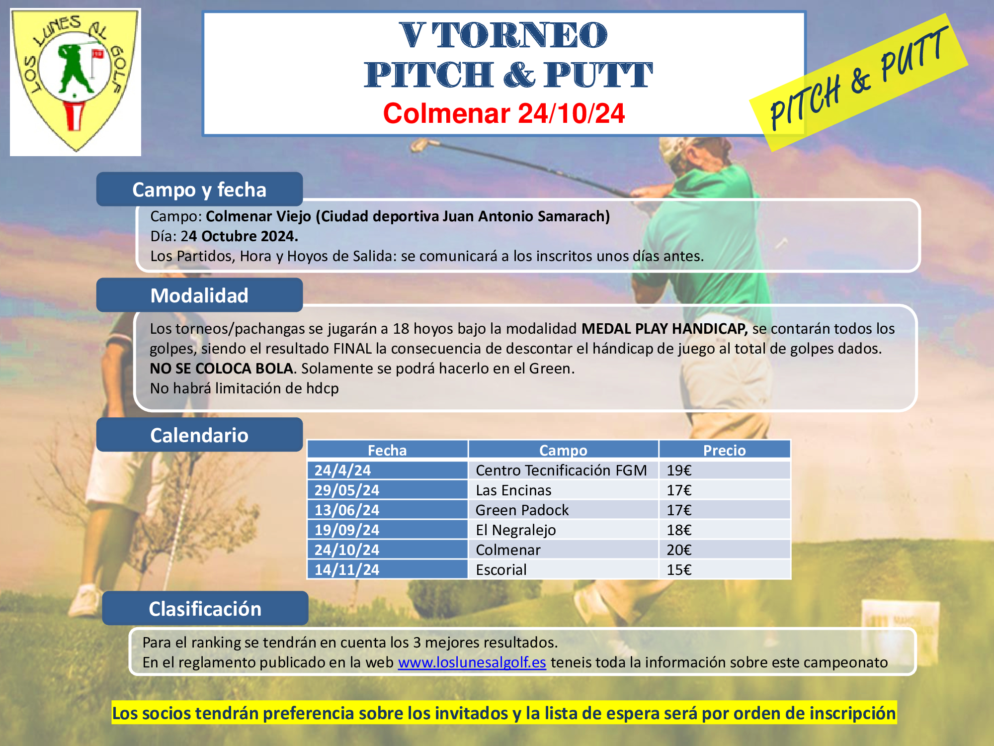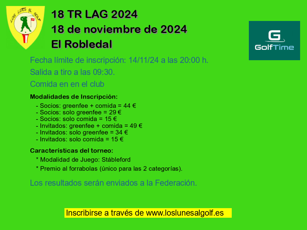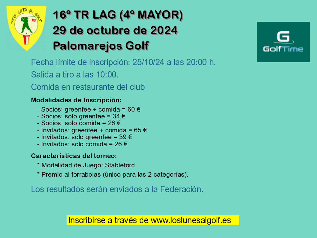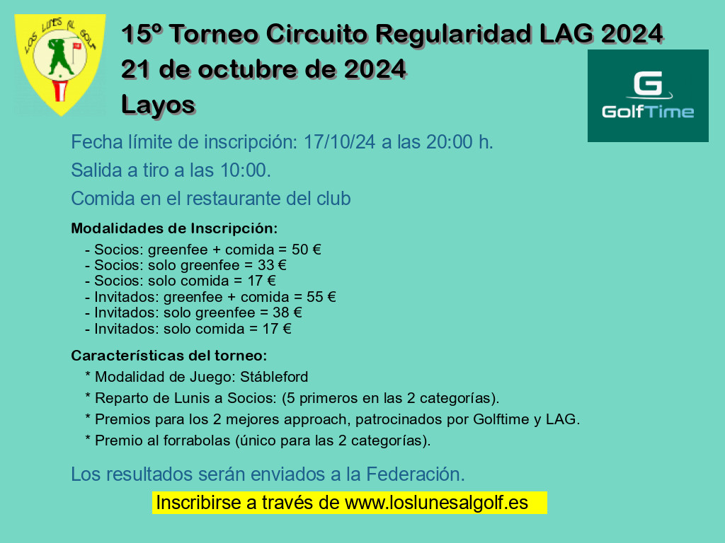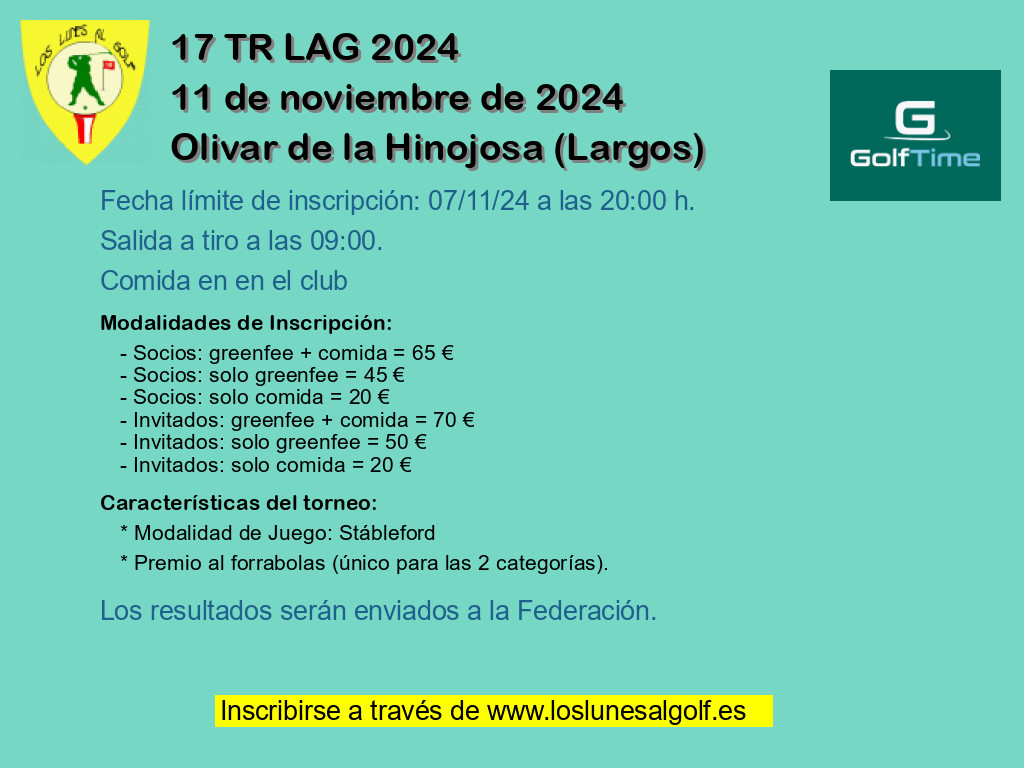 - Modalidad 1 Socios: greenfee + comida = 59 €