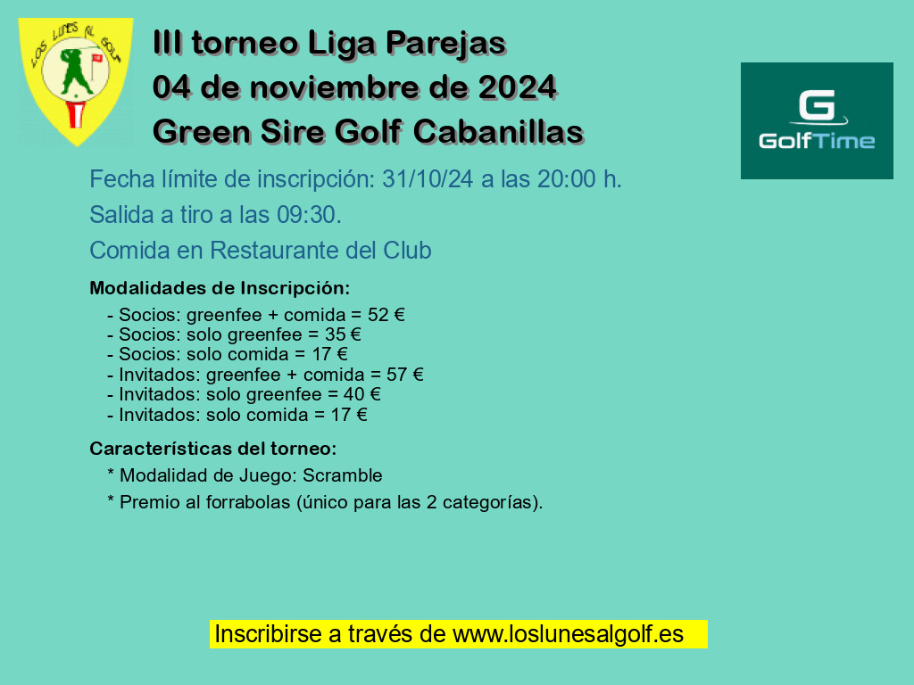 - Modalidad 2 Socios: solo greenfee = 35 €